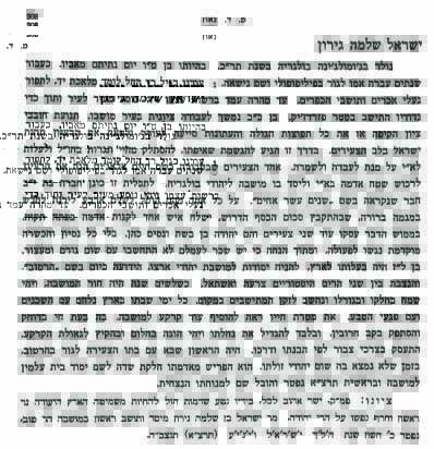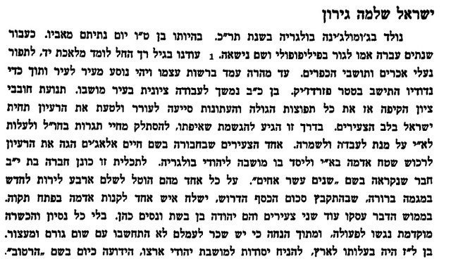 ישראל שלמה גירון שהוא סבא של סבא שלי, נולד ב 1856 בבולגריה. ונפטר ב 11/11/1930 בהר טוב.