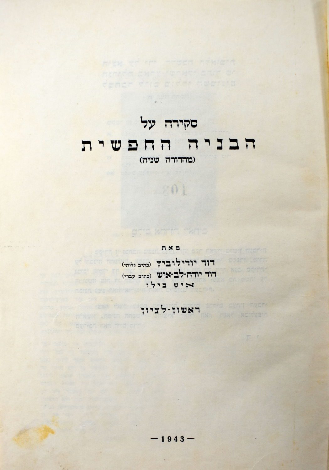 לאחר שובו לארץ ב-1924 המשיך לפעול בספרות ובעיתונות, פרסם מאמרים וכתב ספרים היסטוריים על תולדות היישוב וראשון לציון. ערך את הספר ראשון לציון חתם עליו בשם דוד יודה לב אישראשון לציון בין השנים 1882 ועד 1941. יצא לאור בעזרת חברת כרמל מזרחי. בין חברי המערכת: מנשה מאירוביץ יושב ראש, דב חביב לובמן יועץ. הספר הודפס בדפוס הראשון של ראשון לציון "מרכז" של ז.ינקלביץ. 552 עמודים ועוד עמודי פרסומת התקופה. ספר בפורמט גדול. כולל תמונות, אירועים, אישים, מאורעות, מאמרים, הערכות ועוד. הספר המרשים ביותר על ראשון לציון.