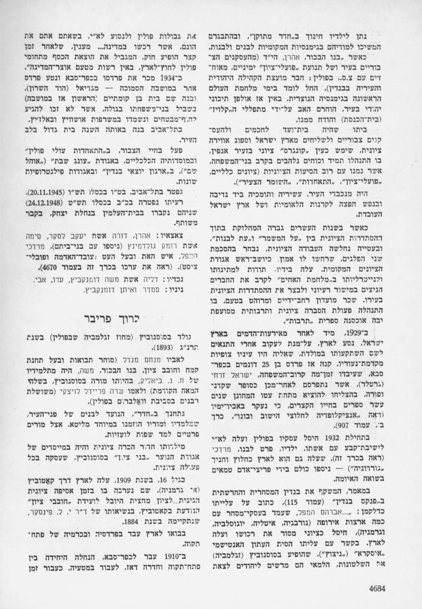 ברוך פריבר דוד תדהר, אנציקלופדיה לחלוצי הישוב ובוניו, כרך 15עמ' 4684 – 4685