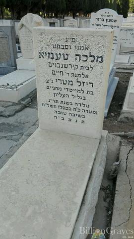 • מלכה [1977-1890] רעיית משה מטרי. נפטרה בירושלים, קבורה בחיפה. [ראה צילום מצורף]