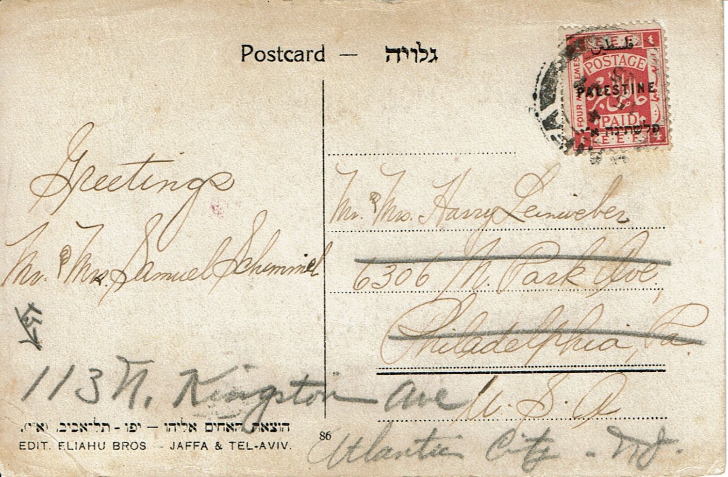 גלויה בהוצאת האחים אליהו, יפו תל-אביב, א"י