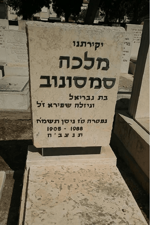 - מלכה (1988-1905) אשת עמנואל סמסונוב, זכרון יעקב. בניהם זלמן (ג'ומק) ויעקב (קולה) סמסונוב.