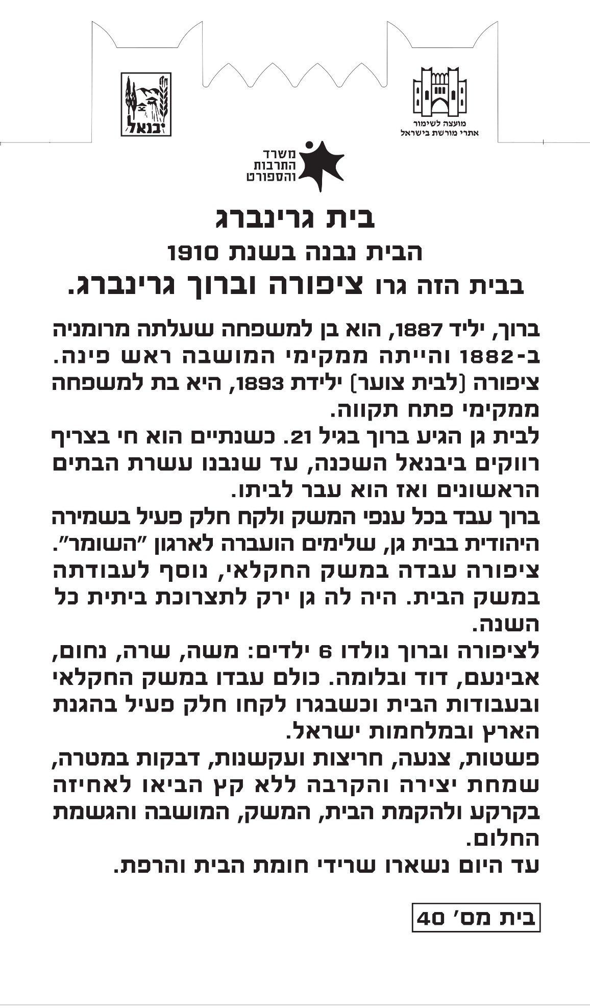 שלט על בית משפחת גרינברג באתר המועצה לשימור אתרי מורשת