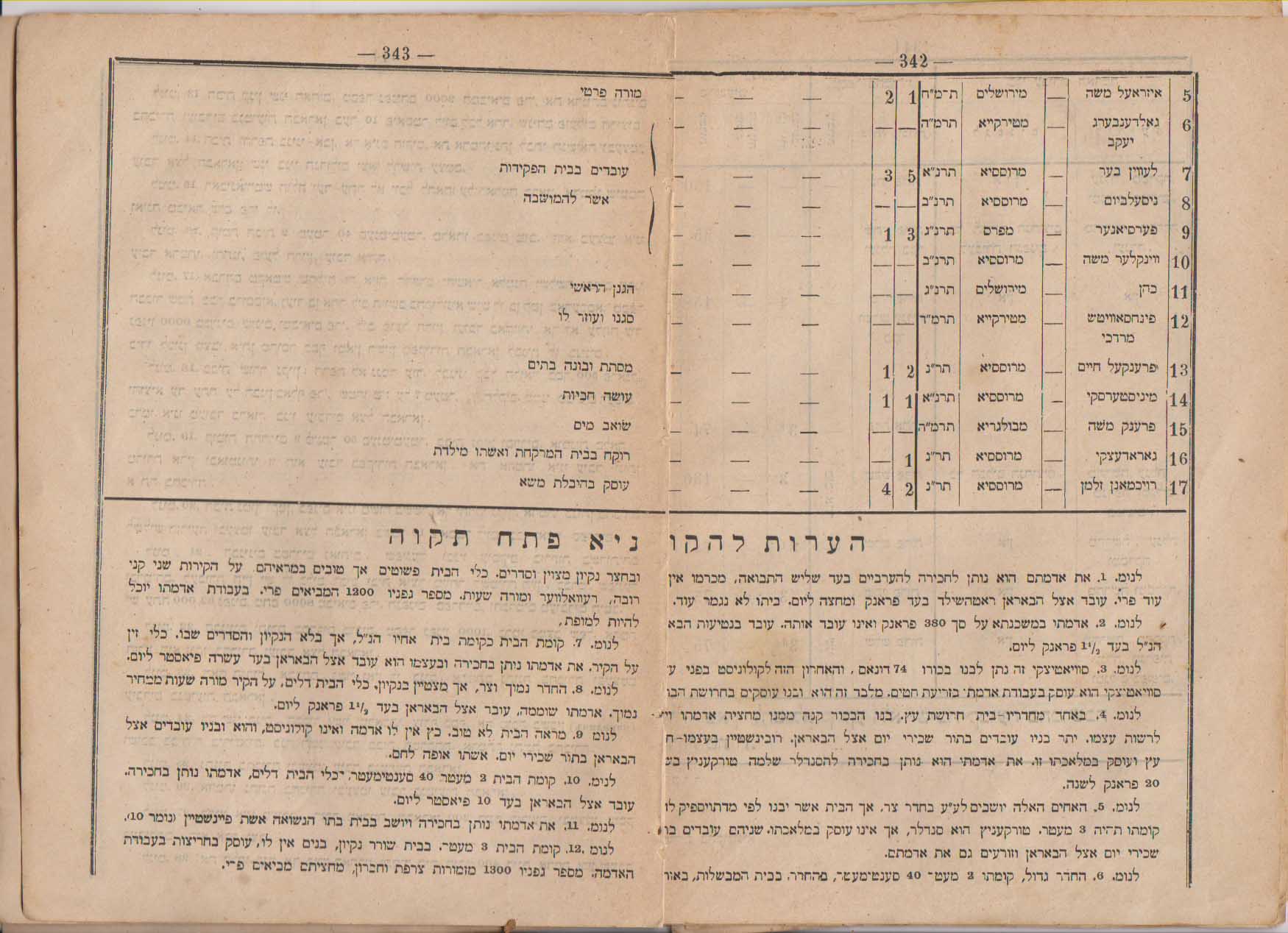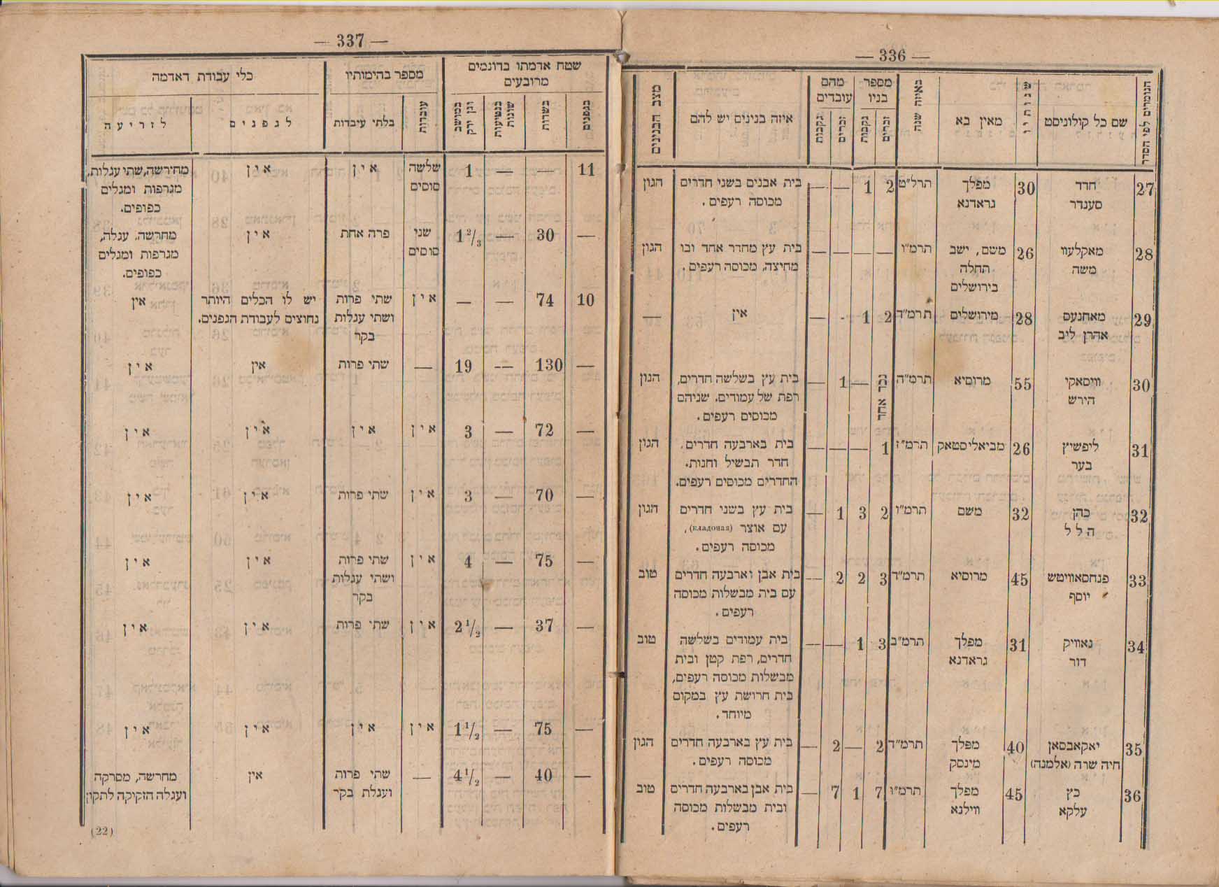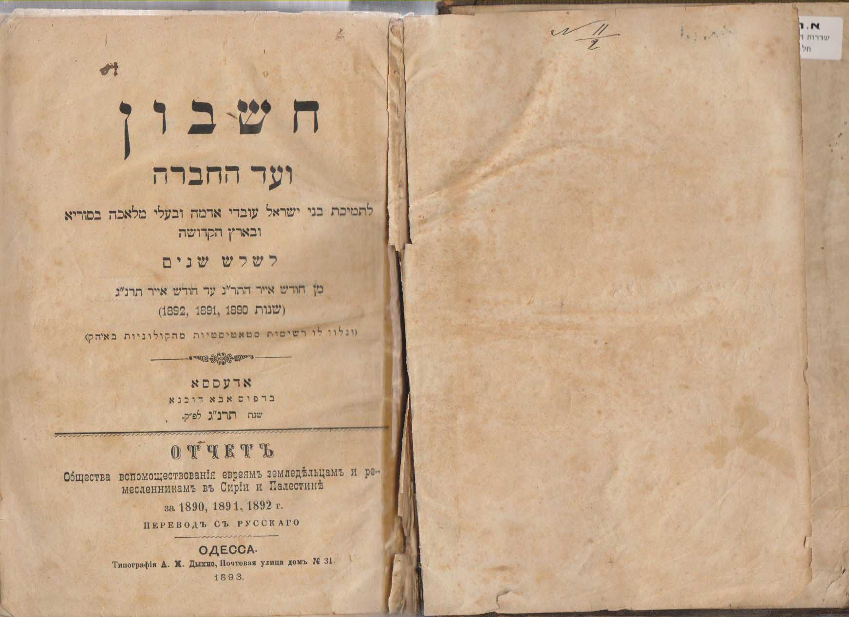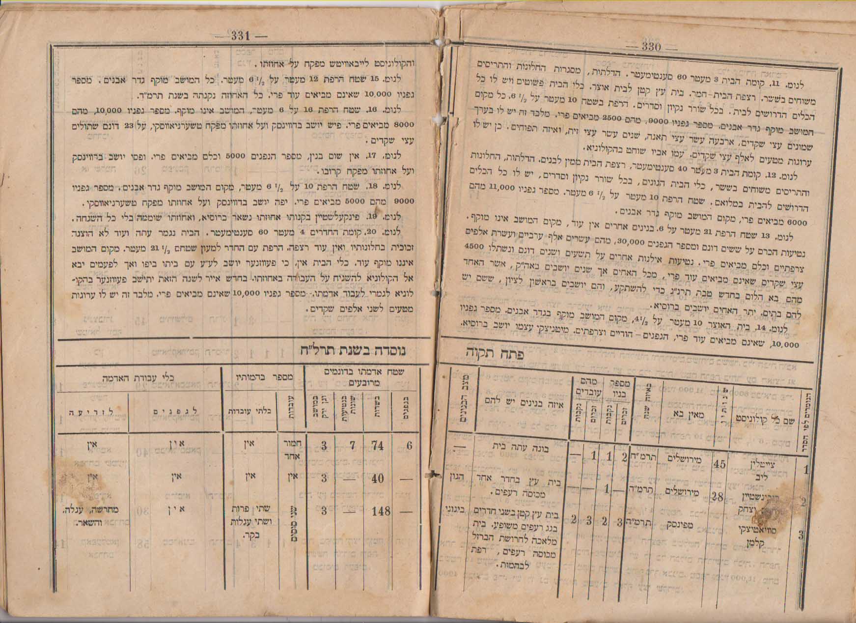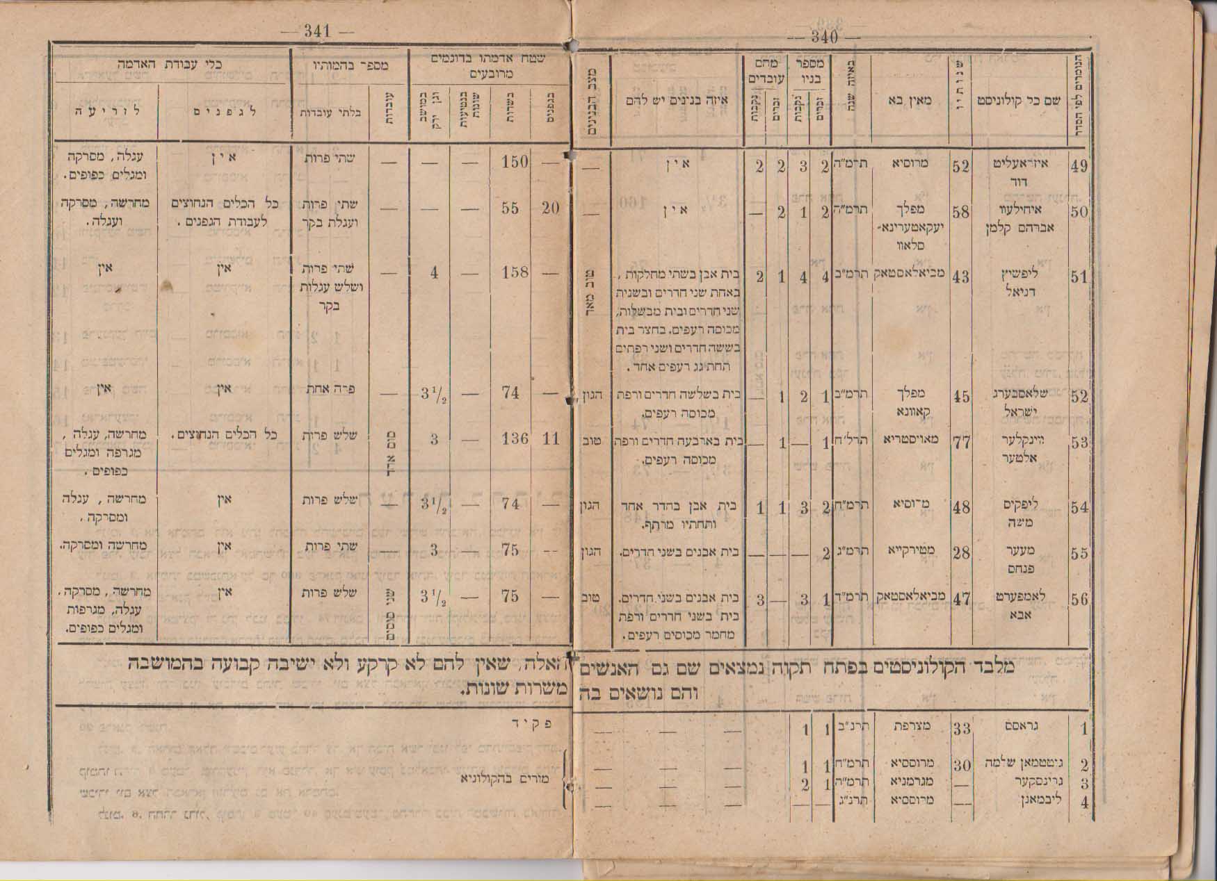 רישום מתיישבי פתח תקוה בשנים 1890-92 בדו"ח של הועד האודסאי