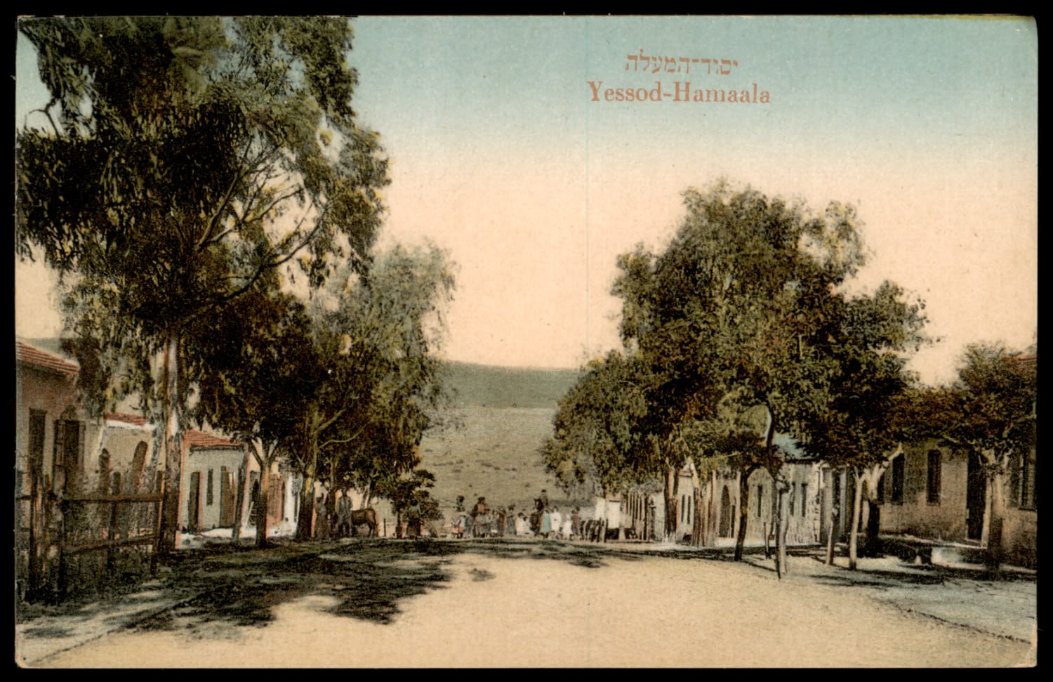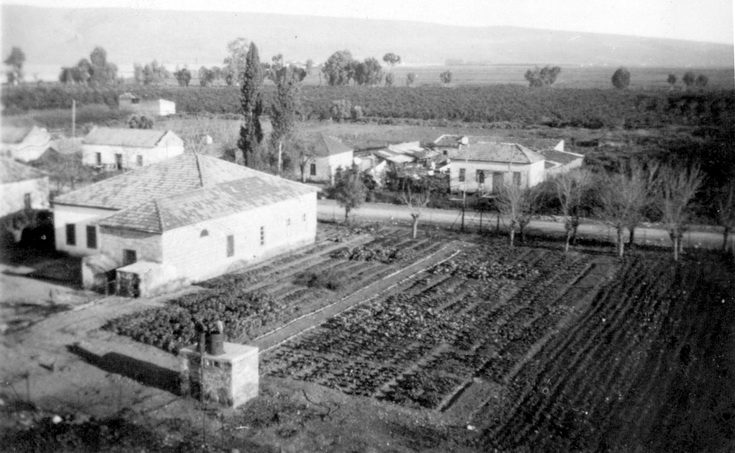 המושבה יסוד המעלה, בית הספר עם גינת הירק, מולו בית לובובסקי.;1940