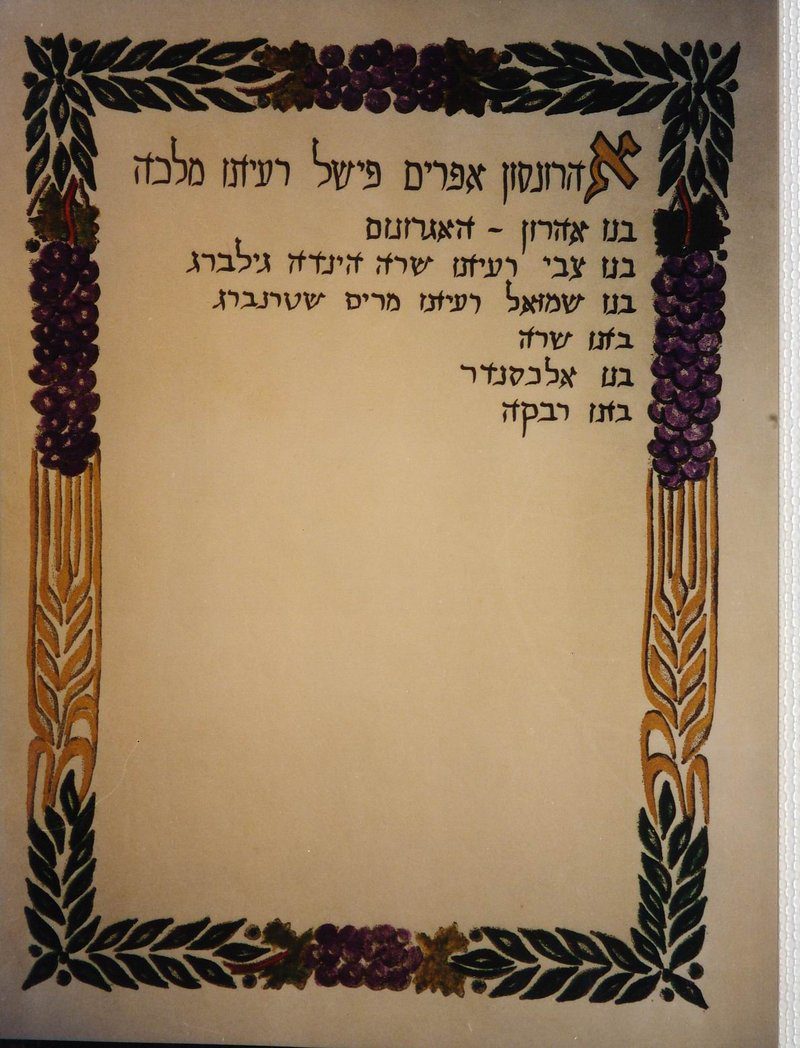 אפרים פישל ואשתו מלכה (לבית גאלאצנו) הגיעו לזכרון יעקב מהעיר באקו ברומניה עם ילדיהם אהרן וצבי , באורחה השלישית בשנת 1882.