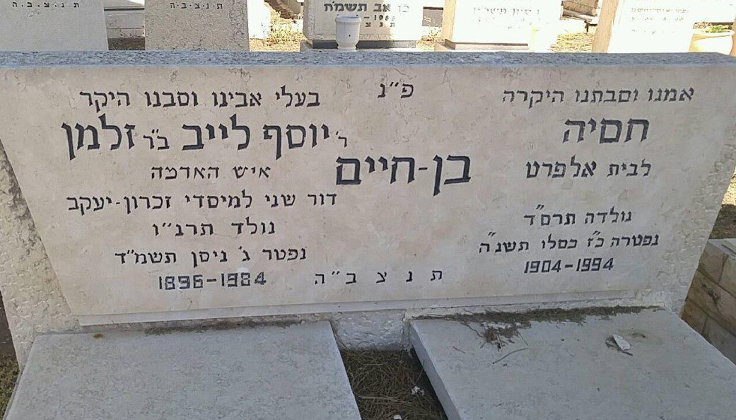 - יוסף לייב [1896 – 1984] רעייתו חסיה אלפרט [1904 – 1994] בנותיהם שולמית שטרנברג ומיכל שכטר בזכרון יעקב