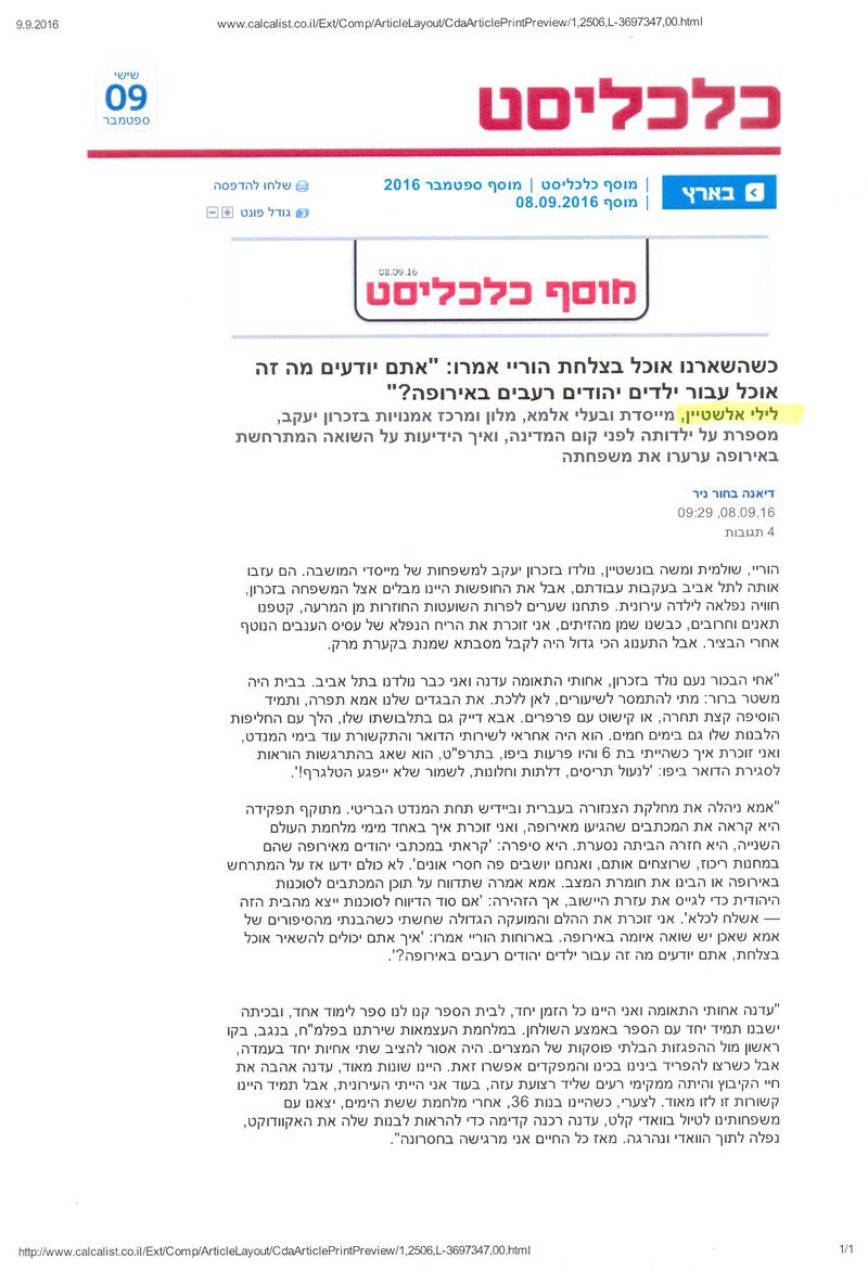 - שולמית אשת משה בונשטיין. בתם לילי אלשטיין הקימה את מלון אלמא בזכרון יעקב בשנת 2014