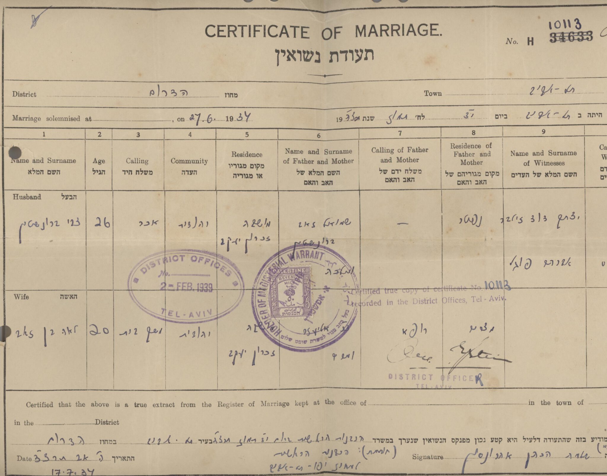 דף הבית » אנשי המושבות » זכרון יעקב » ברונשטיין שמואל זאב ומלכה