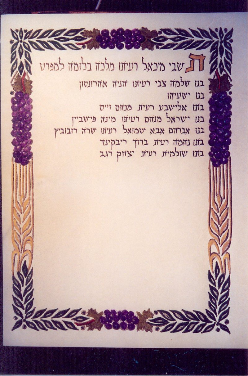 - מנחם ישראל [1988-1901] נשא לאשה את מינה לבית פישביין, איכרים בזכרון יעקב
