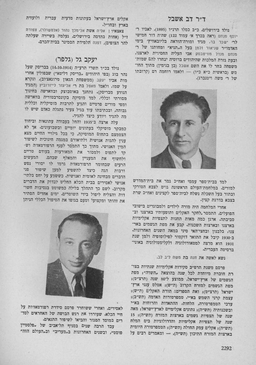 דב אשבל דוד תדהר (עורך) אנציקלופדיה לחלוצי הישוב ובוניו, 1952, כרך ה' עמ' 2292