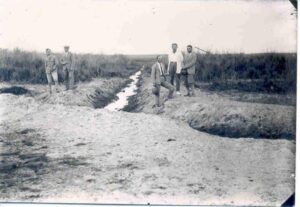 תושבים ליד תעלת ניקוז במושבה חדרה, 1900