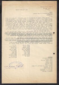 מכתב ועד המושבה לכופר הישוב בעקבות מאורעות תרצ"ט 1939