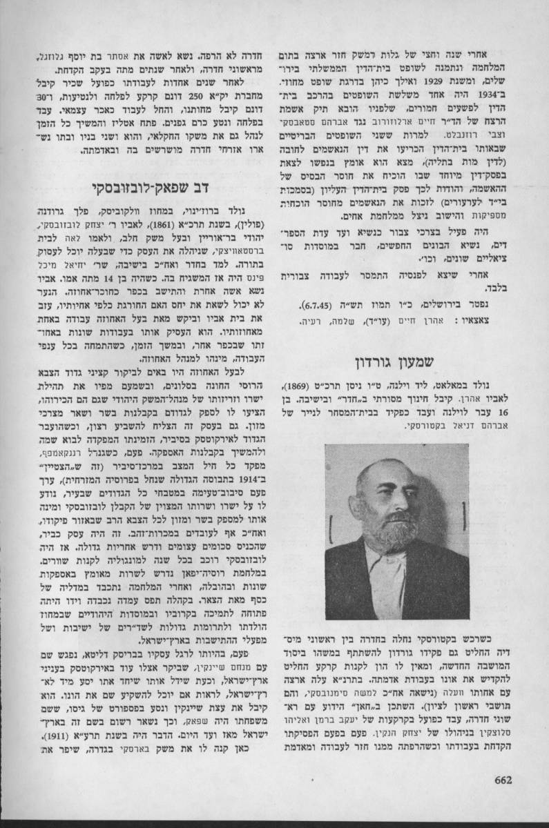 כשרכש בקטורסקי נחלה בחדרה בין ראשוני מיסדיה החליט גם פקידו גורדון להשתתף במשהו ביסוד המושבה החדשה, ומאין לו הון לקנות קרקע החליט להקדיש את אונו בעבודת אדמתה. בתרנ"א עלה ארצה עם אחותו וועלה (נישאה אח"כ למשה סימנובסקי , והם תושבי ראשון לציון). השתכן ב"חאן" עם ראשוני חדרה, עבד כפועל בקרקעות של יעקב ברמן ואליהו סלוצקין בניהולו של יצחק הנקין . פעם בפעם הפסיקתו הקדחת בעבודתו וכשהרפתה ממנו חזר לעבודה ומאדמת חדרה לא הרפה. נשא לאשה את אסתר בת יוסף גלוזגל , מראשוני חדרה, ולאחר שנתים מתה בעקב הקדחת.