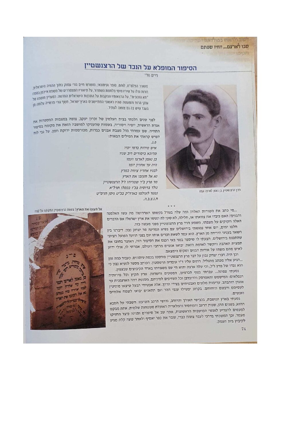 כשנפטר בשנת תרס"ט, 1909.נכתב עליו: "גם בת־שלמה, שנעזבה כמעט מאכריה כולם, שכלה את הטוב והיקר שבה, את פרץ הרצנשטין, גם הוא הובא למנוחה בזכרון־יעקב, בנחלת עולם אשר על ההר." [סמסונוב עמ' 316]