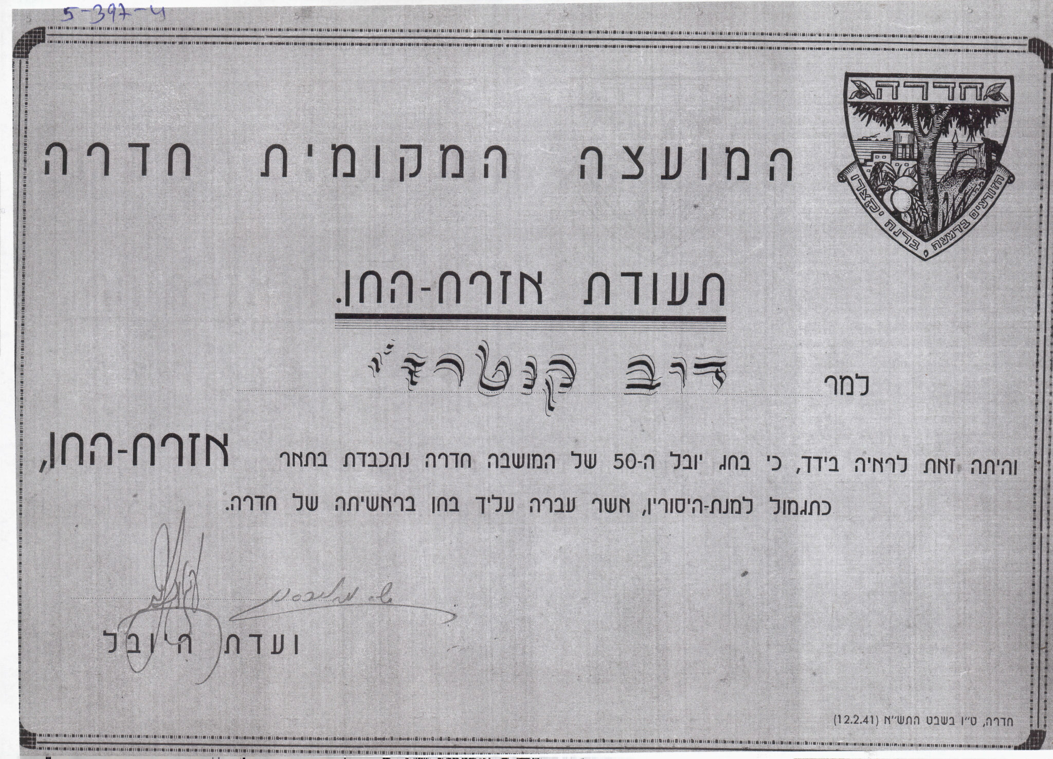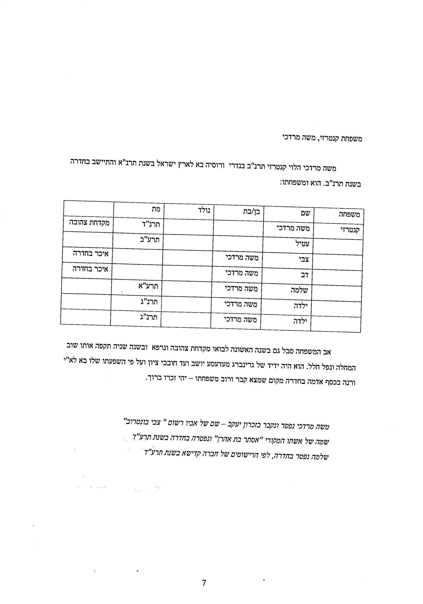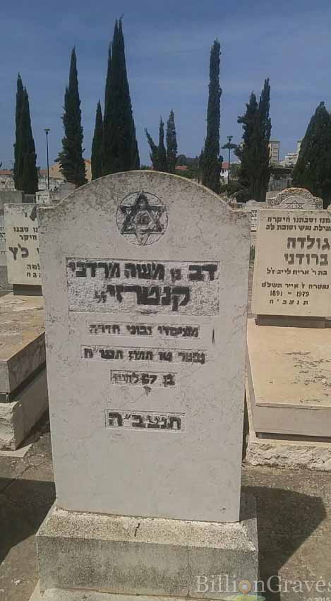משה מרדכי הלוי קנטרז'י היה ידיד של גרינברג מאודסה, יושב ראש ועד חובבי ציון, ובהשפעתו עלה לארץ ישראל בשנת תרנ"ב (1891/2). הוא קנה אדמה בחדרה והתכונן להיות איכר. כבר בשנה הראשונה סבל מקדחת צהובה, ונרפא. באותה שנה נפטרו שתי בנות צעירות מהמשפחה, שמותיהן לא ידועים. בשנה השניה נתקף שוב בקדחת, ונפטר בזכרון יעקב. בשנת 1911 נפטר גם בנם שלמה. אלמנתו עטיל (אסתר בת אהרון) נפטרה בחדרה בשנת 1912 (או 1914 לפי רישום אחר)