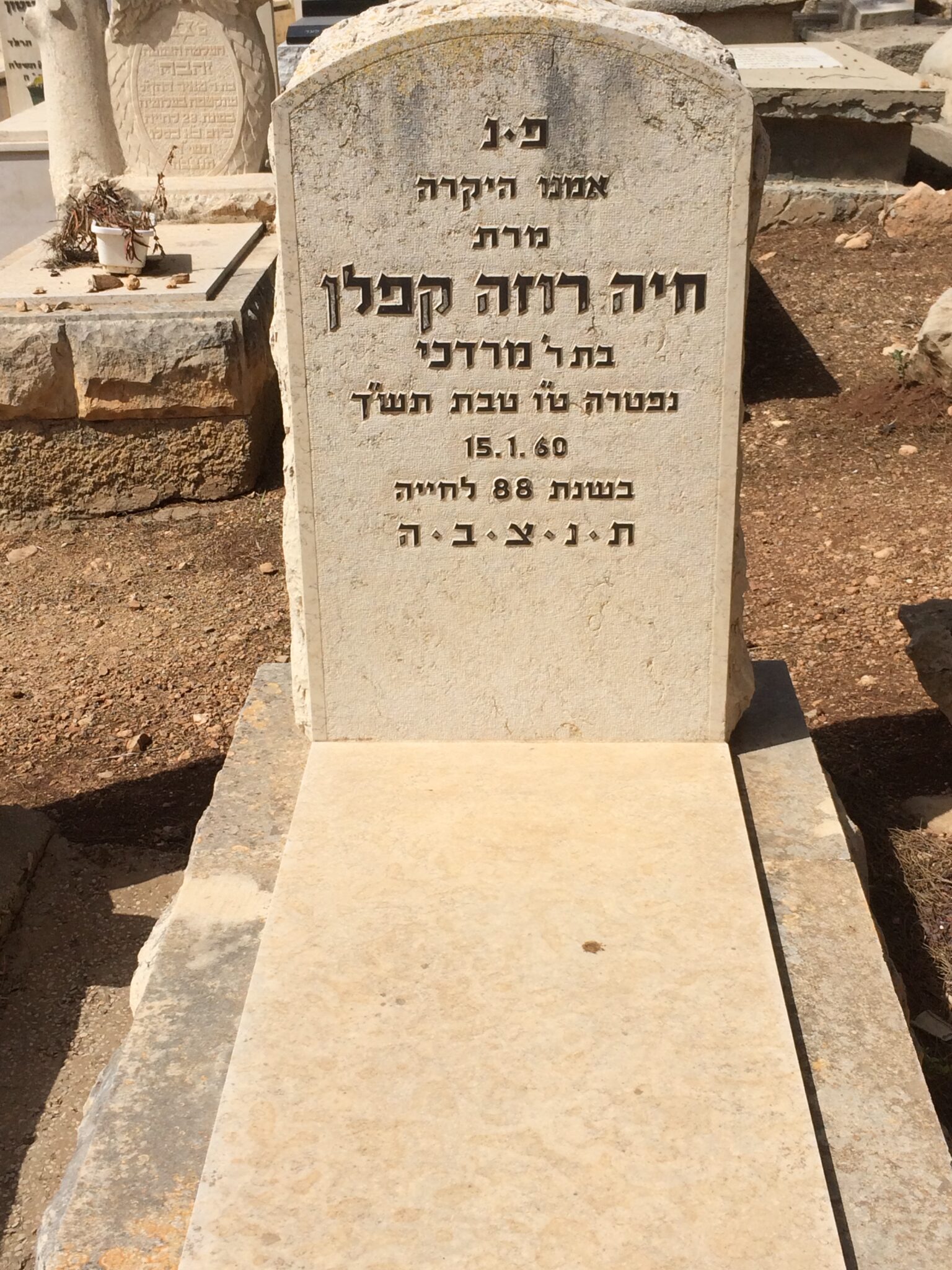 רוזה וילדיה, עברו לזכרון יעקב. בזכרון קבורים ראובן, רוזה ועוד בני משפחת קפלן.
