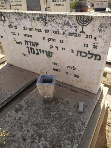 - מלכה [?189 – 1987] רעיית יהודה שלמה שיינמן, נולדה בחברון, גרה בארה"ב, נקברה בחדרה