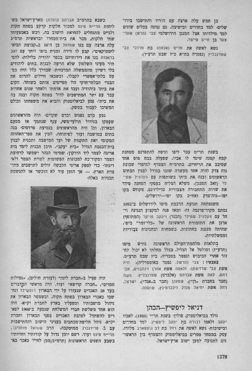 דניאל ליפשיץ הכהן, ממייסדי פתח תקווה נולד בביאליסטוק שברוסיה בשנת 1850 והיה בעל בית מסחר לספרים. עם התעוררות הרעיון ליישוב ארץ ישראל נעשה מחסידיו הנלהבים ורכש שתי חלקות מאדמת פתח תקווה, מכר את בית מסחרו ועלה ארצה בשנת תרמ"ג עם בנו בכורו שמואל בן ה 11, תחילה גרו ביפו ואחר כך ביהודיה (יהוד).שם נמנה על חמשת המשפחות הראשונות – הגרעין ממנה צמחה המושבה.