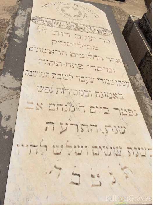 נפטר בפתח תקוה, ד' אב תרע"ה, 1915.
