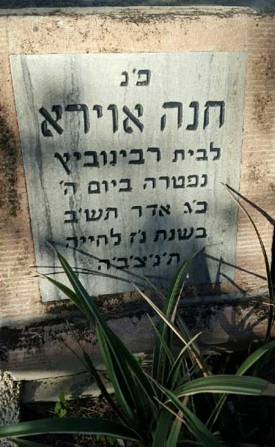 - חנה (1942-1885) רעיית בן-ציון אוירא, נקברה בבית העלמין כנרת