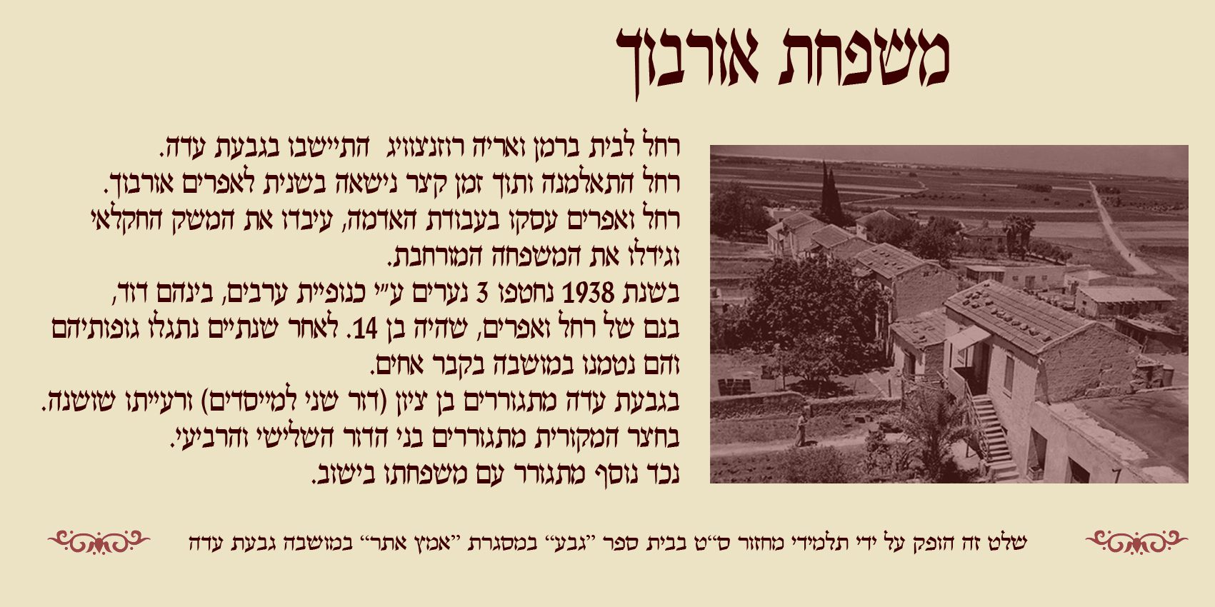 בשנת 1938 נחטפו 3 נערים מגבעת עדה, ובניהם דוד בן ה-14. רק לאחר שנתיים התגלו גופותיהם והם נקברו במושבה בקבר אחים.