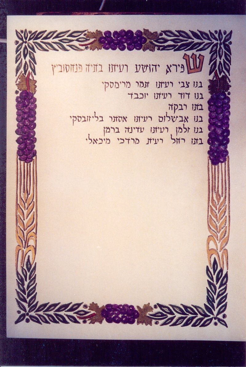 - רחל […] רעיית מרדכי מיכלסון (מיכאלי). היגרו לשיקגו ארה"ב ונקראו שם רות ומקס מיכלסון