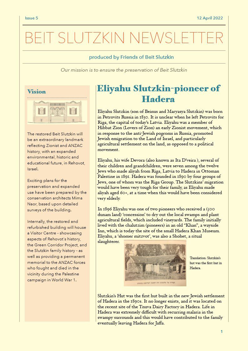 סלוצקין בנה את הצריף הראשון מחוץ לחאן. בית המשפחה היה מקום התאספות ל"אינטילגנציה" של חדרה. בני המשפחה סבלו מאד מהקדחת והם עברו ליפו, שם פגשו את קרוב המשפחה אריה לייב סלוצקין.