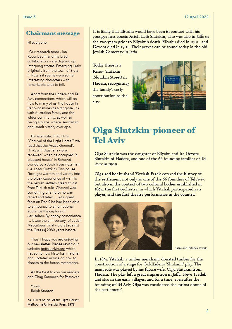 - אולגה [….. – ….. ] רעיית יצחק פרנק, ממשפחות מייסדי תל אביב, עזהו את הארץ בשנת 1912 לג'נבה ומשם לארה"ב