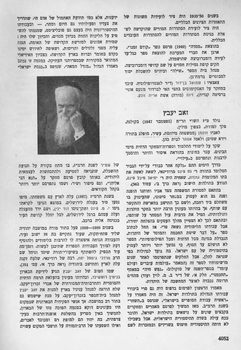 זאב יעבץ היה סופר, היסטוריון ואיש חינוך. נמנה עם מקימי תנועת המזרחי וממחדשי השפה העברית.
