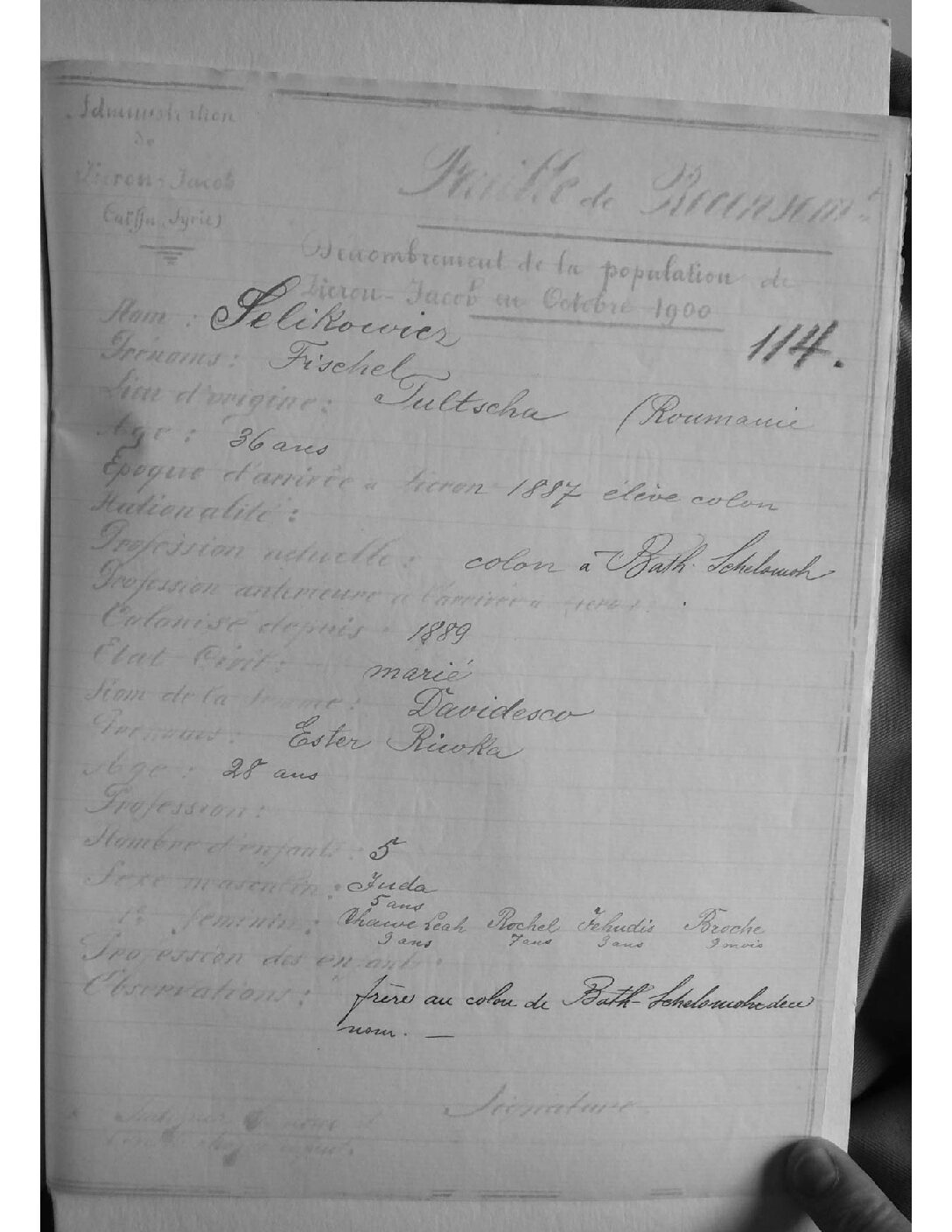 היו תושבי בת שלמה משנת 1889 עד 1902