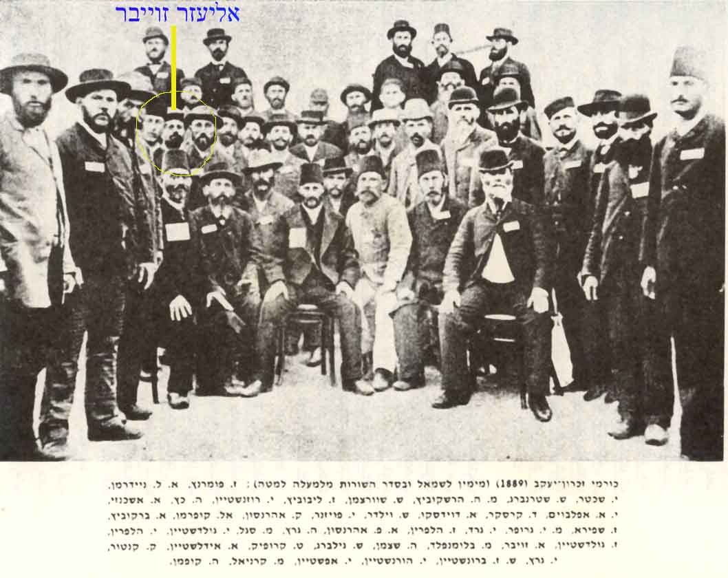 אליעזר זוייבר הגיע למושבה מהעיר גאלאץ ברומניה עם משפחתו, אשתו רוזה יענטע וילדיו. זוייבער מחניכי בית הספר החקלאי "הארבייטער שוללע", הצטרף למתיישבי זכרון יעקב עם סיום לימודיו. [הערה: שמו מופיע אצל סמסונוב ברשימת החלוצים תלמידי הארבייטער שוללע [1942, עמ' 500], אבל לא מופיע בדף המאוחר משנת 1968 המכונה אלבום המשפחות]